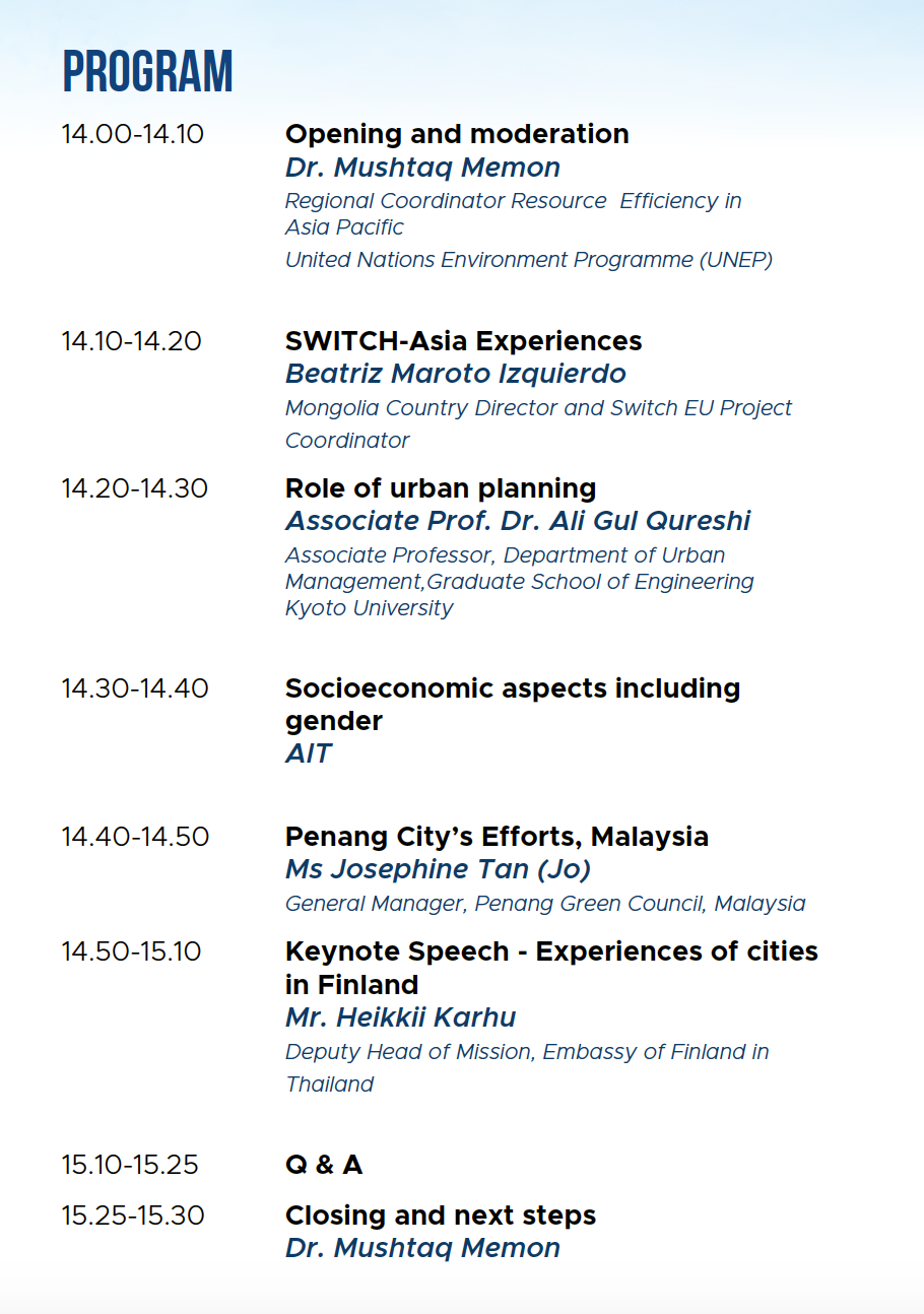 The focus of this dialogue is on "Circular Cities" and the importance of reducing negative environmental impacts through resource efficiency, sustainable consumption and production (SCP) practices and circular economy approaches.