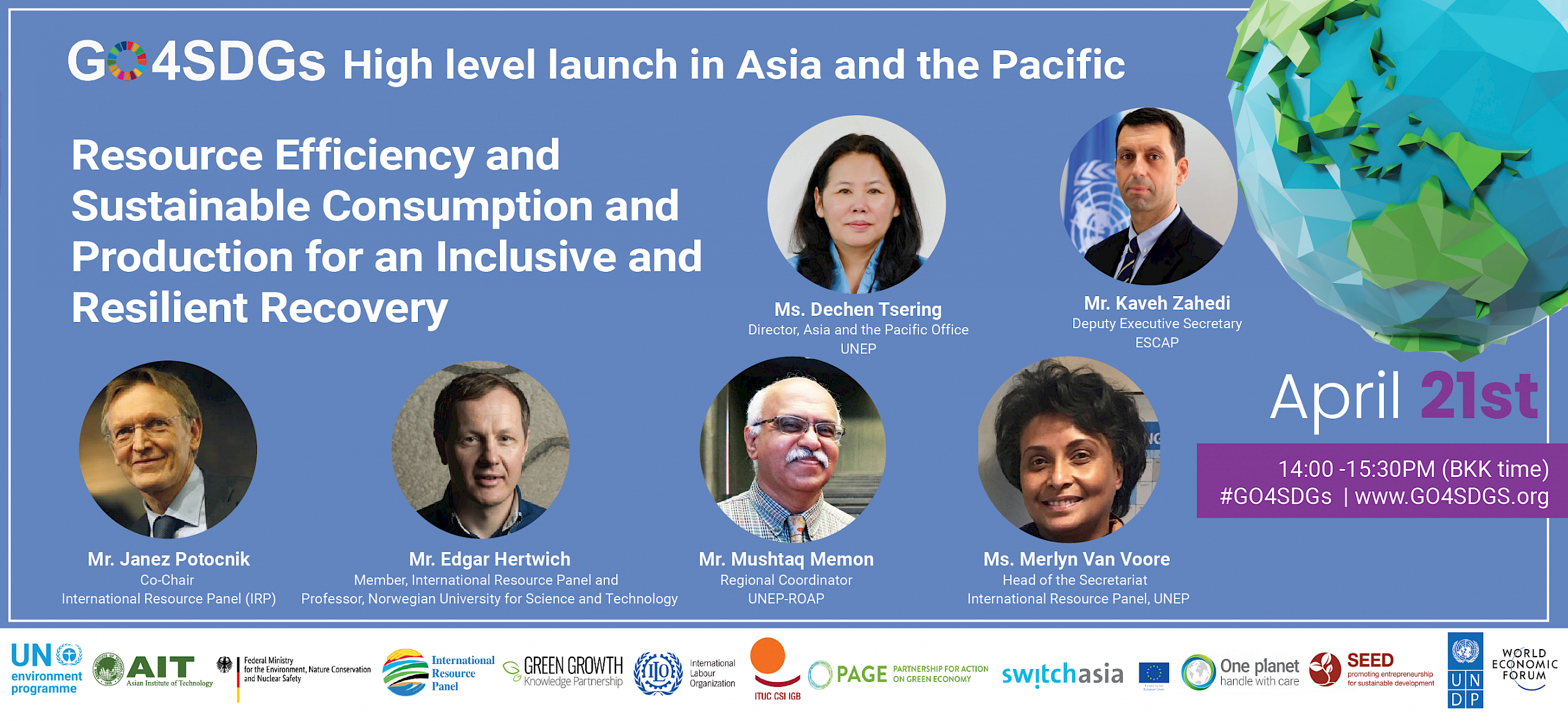 The Global Opportunities for Sustainable Development Goals (GO4SDGs) initiative is hosting the Resource Efficiency and Sustainable Consumption and Production for an Inclusive and Resilient Recovery in Asia and the Pacific- GO4SDGS High level launch.