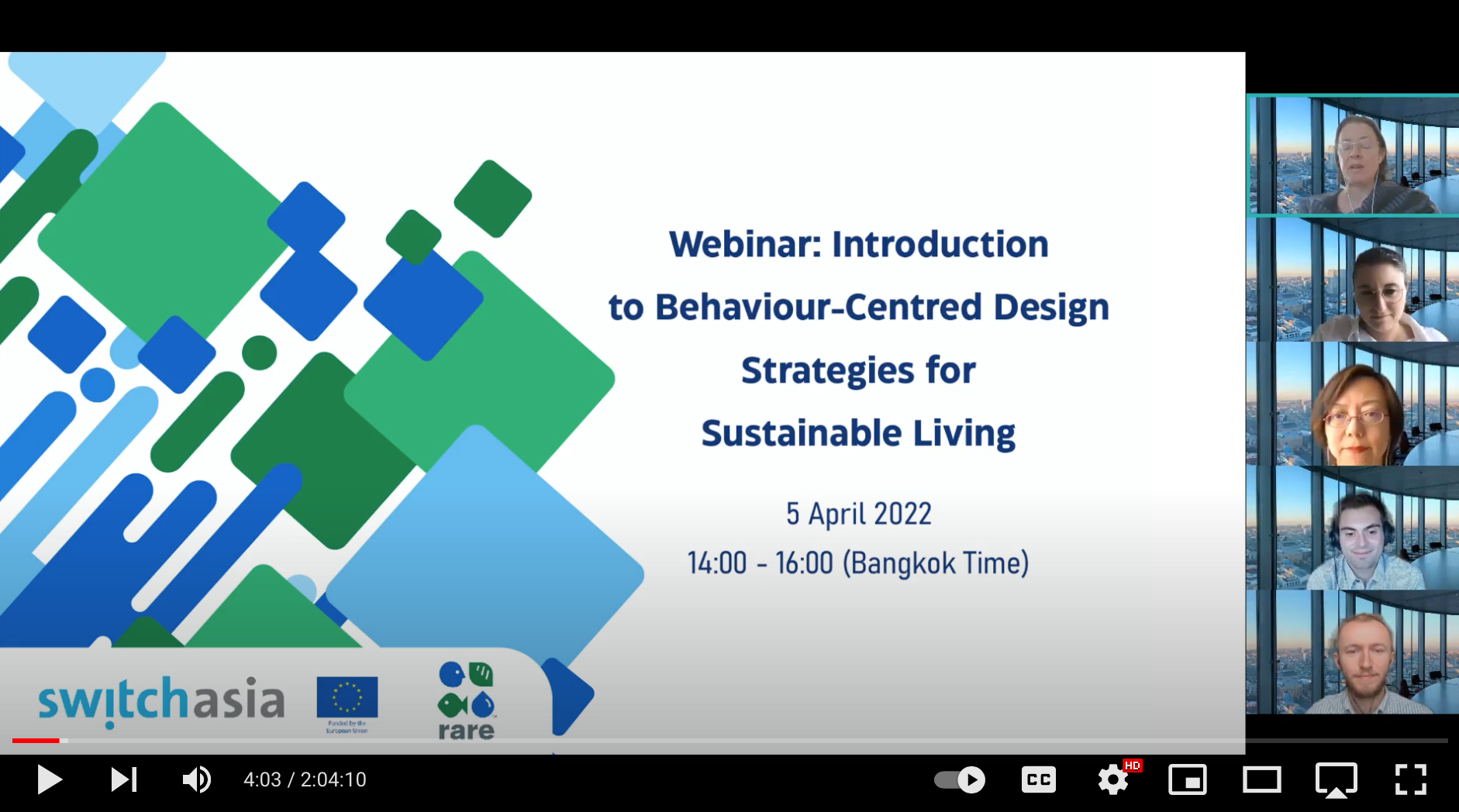 This webinar will be jointly delivered by RARE and SWITCH-Asia Experts. Through the Center for Behavior & the EnvironmentRare uses the science of human behaviour to encourage individuals and their communities to adopt more sustainable practices and behaviours that benefit people and nature – and ensure that change lasts. Rare has helped thousands of people across hundreds of communities in over 60 countries shift their behaviours and practices to protect the nature that sustains their lives, livelihoods, and communities