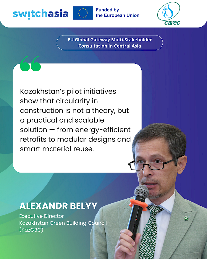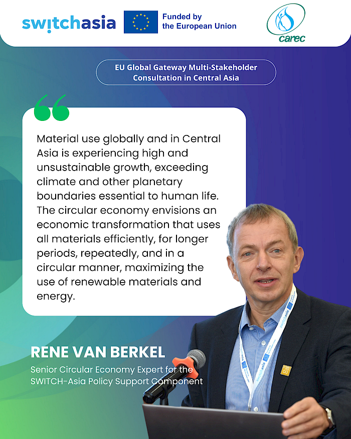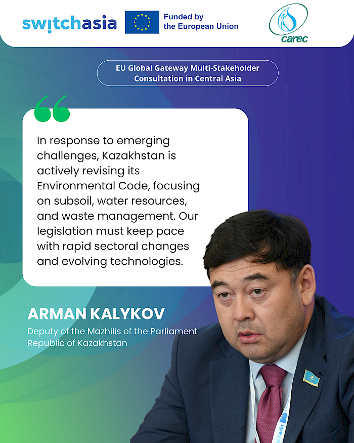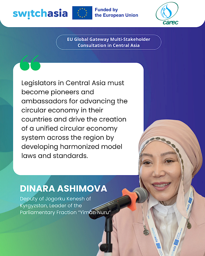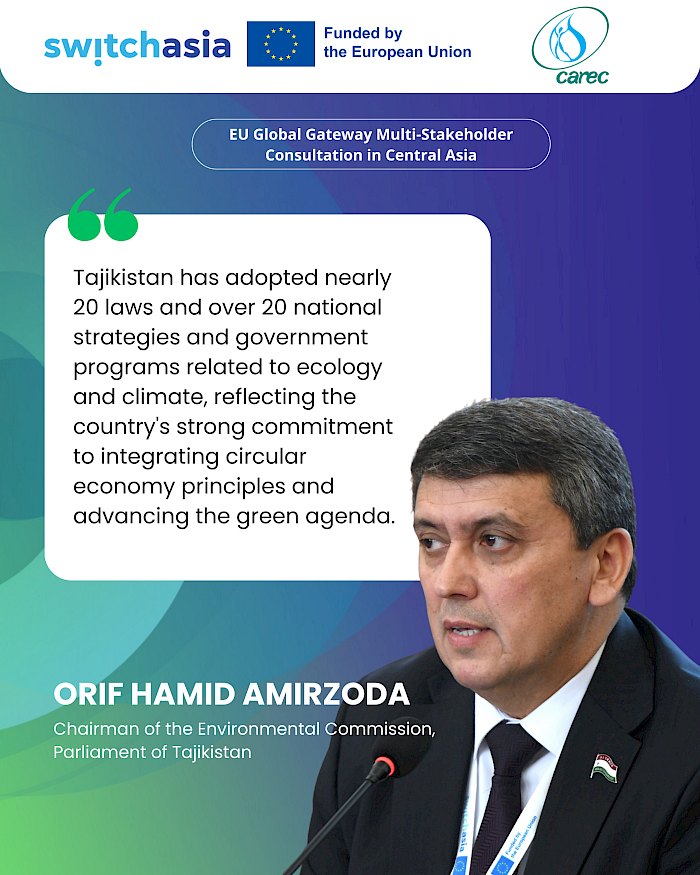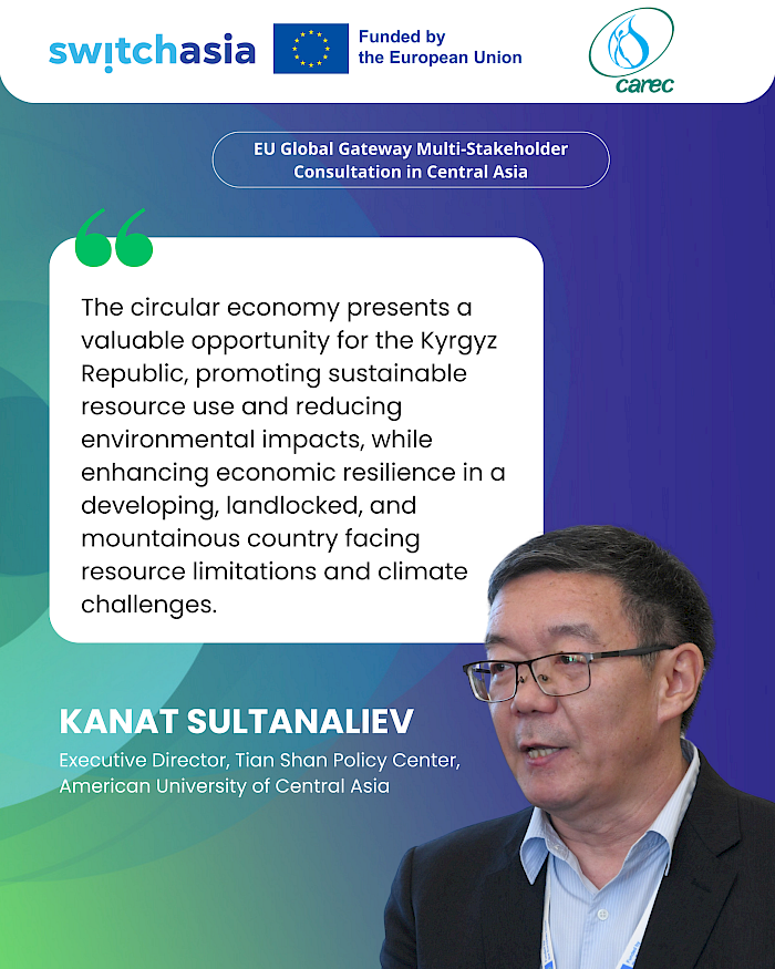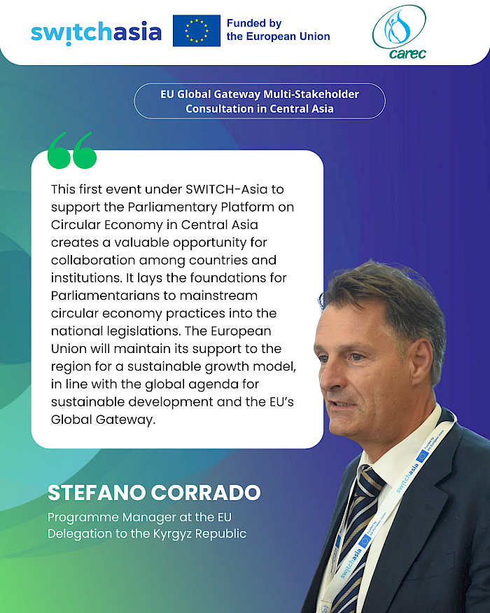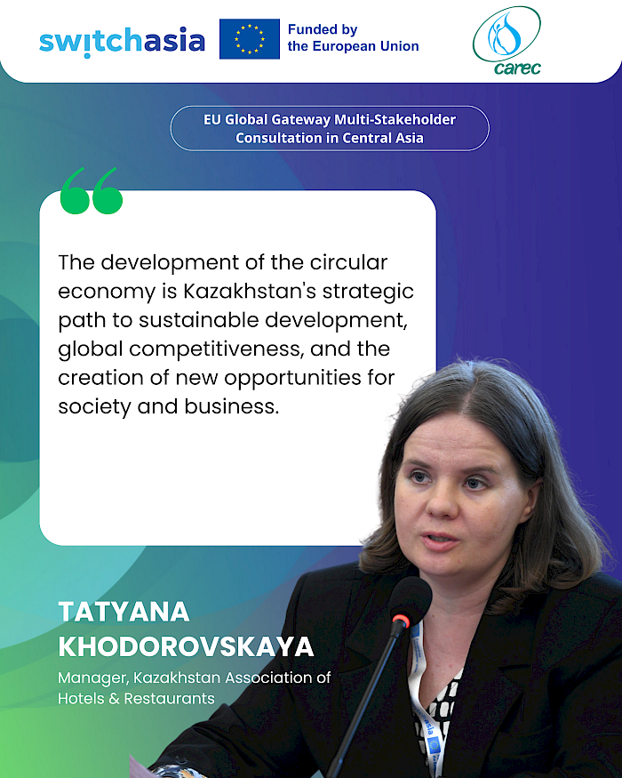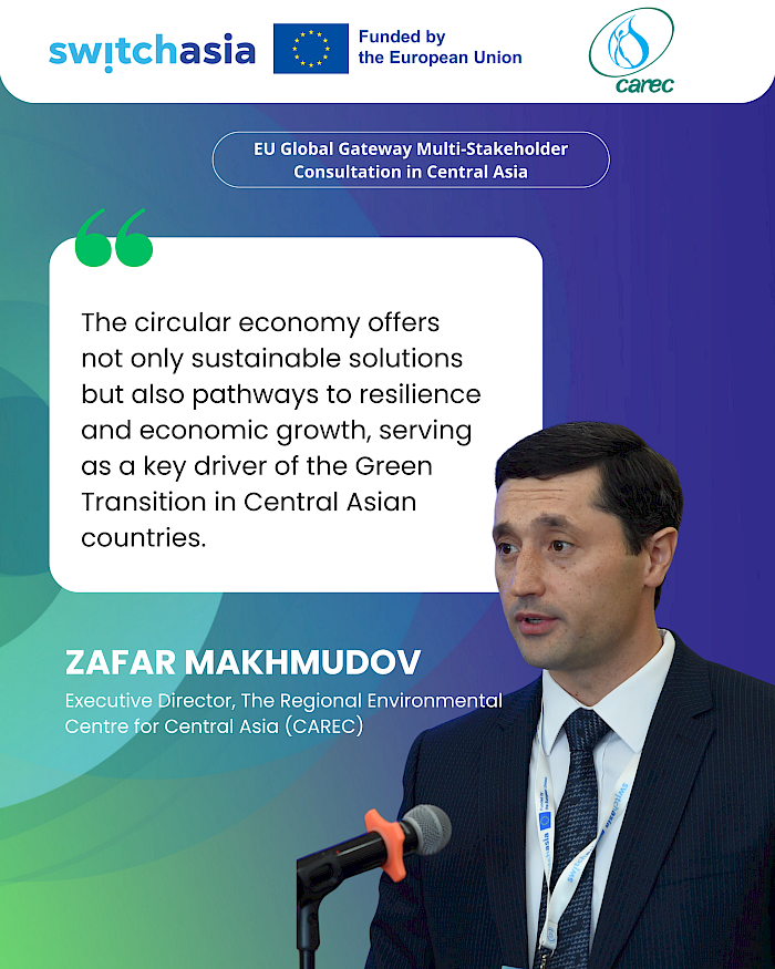 These developments towards circular economy strongly align with the broader goals of the EU Global Gateway, which places circular economy and resource efficiency, along with pollution and greenhouse gas emission reduction, at the core of its green and sustainable development agenda. These priorities are reflected in the Gateway’s focus on Green Transition and Climate Action, Sustainable Infrastructure, and Support for Sustainable Value Chains. By fostering policy dialogue, knowledge exchange, and legislative engagement, the Global Gateway can support Central Asia’s transition toward circular value chains - enhancing regional sustainability, economic resilience, and alignment with global green economy standards.