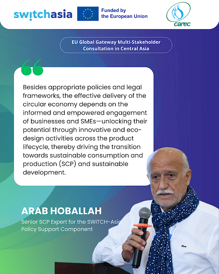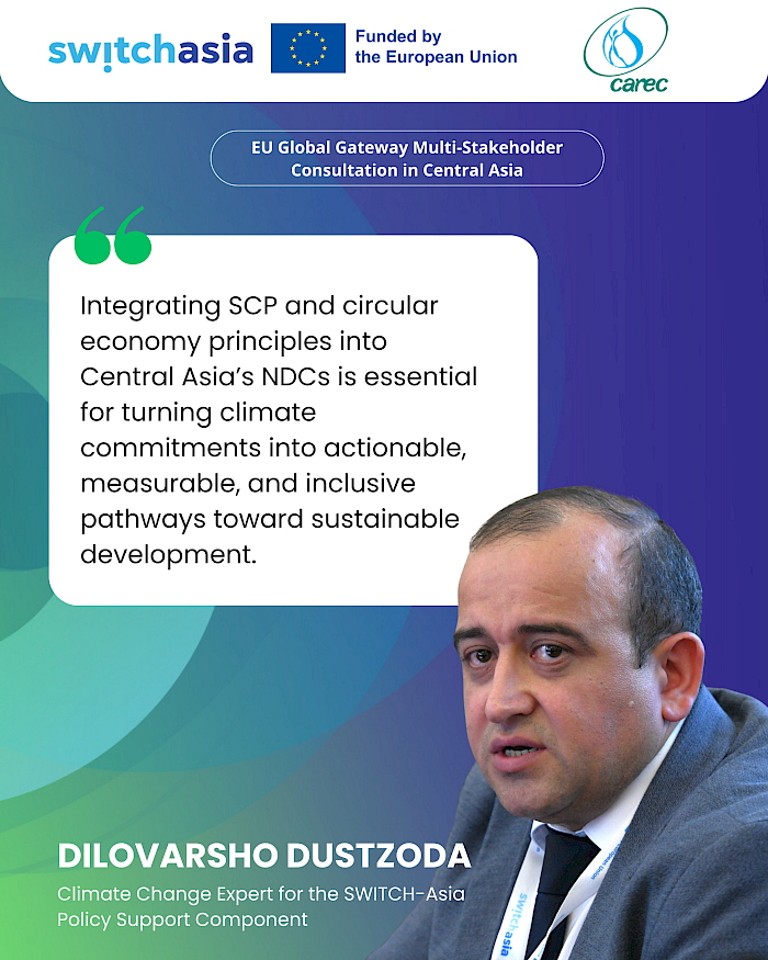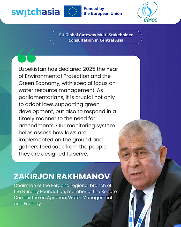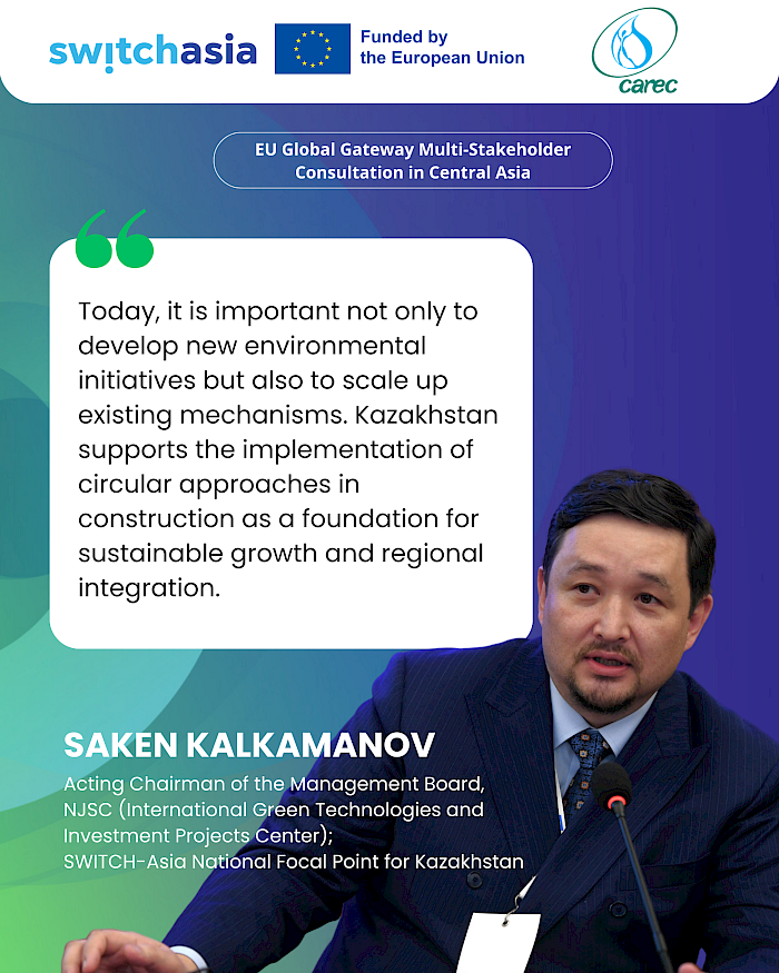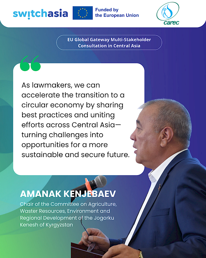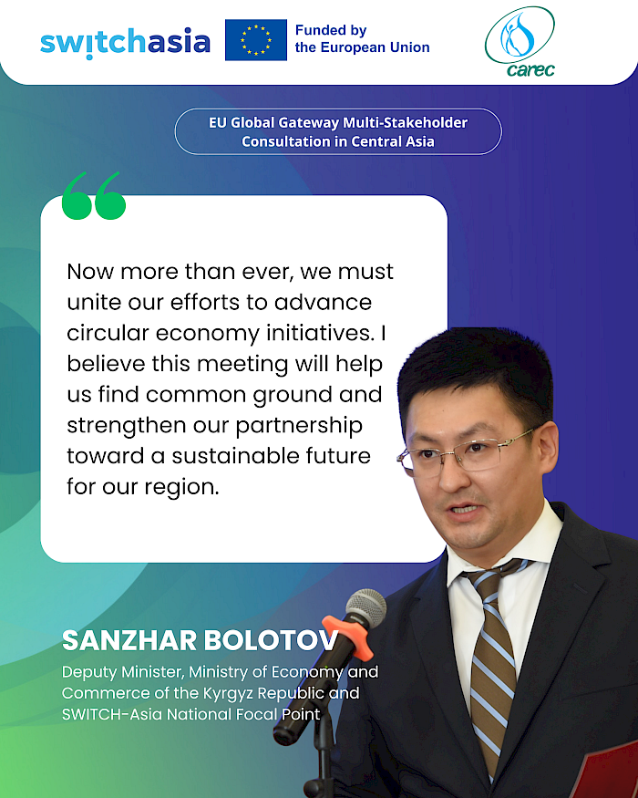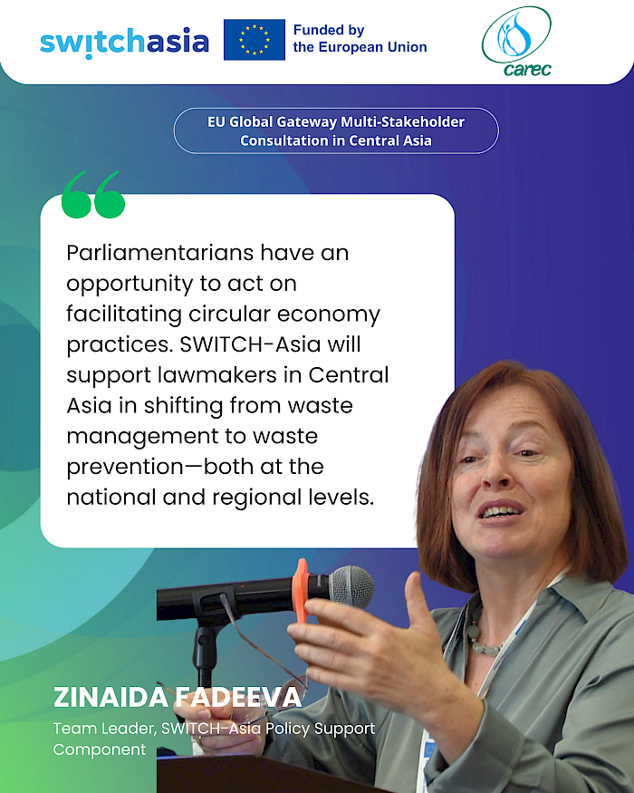 This meeting will centre on advancing the circular economy agenda through dialogue with parliamentarians from Central Asian countries, focusing on strategic directions, key opportunities for action, and pathways for legislative development. Contributions from various SWITCH-Asia Technical Advisory projects will enrich the discussion by offering practical insights from ongoing work in areas such as sustainable tourism, circular economy in construction, green public procurement (GPP), strengthening NDCs through sustainable consumption and production (SCP) and extended producer responsibility (EPR).