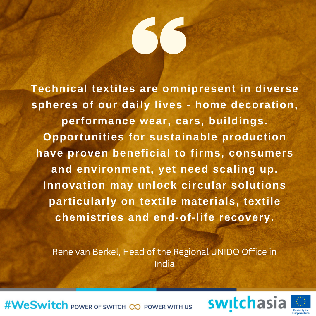 - Increased knowledge of key initiatives toward sustainable and circular value chain in the technical textile industry and understanding of how to scale up such initiatives through policy support and collaboration and partnerships.