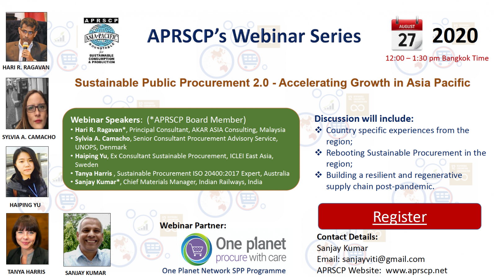 Against this background, the APRSCP along with UNEP’s One Planet Network SPP Programme is organizing a webinar on ‘Sustainable Public Procurement 2.0 for Accelerating Sustainable Growth in the Asia Pacific’ on 27th August 2020.
