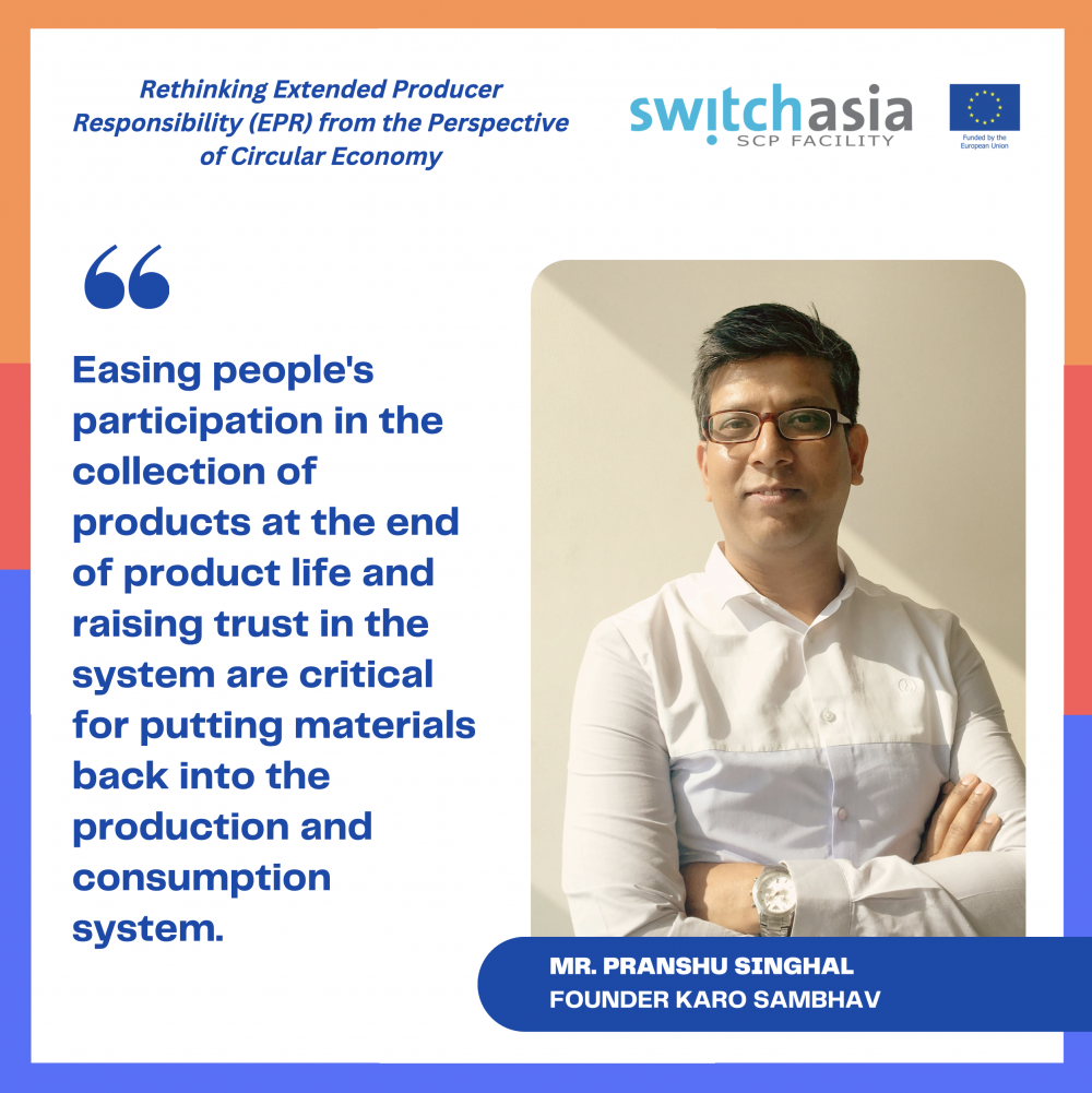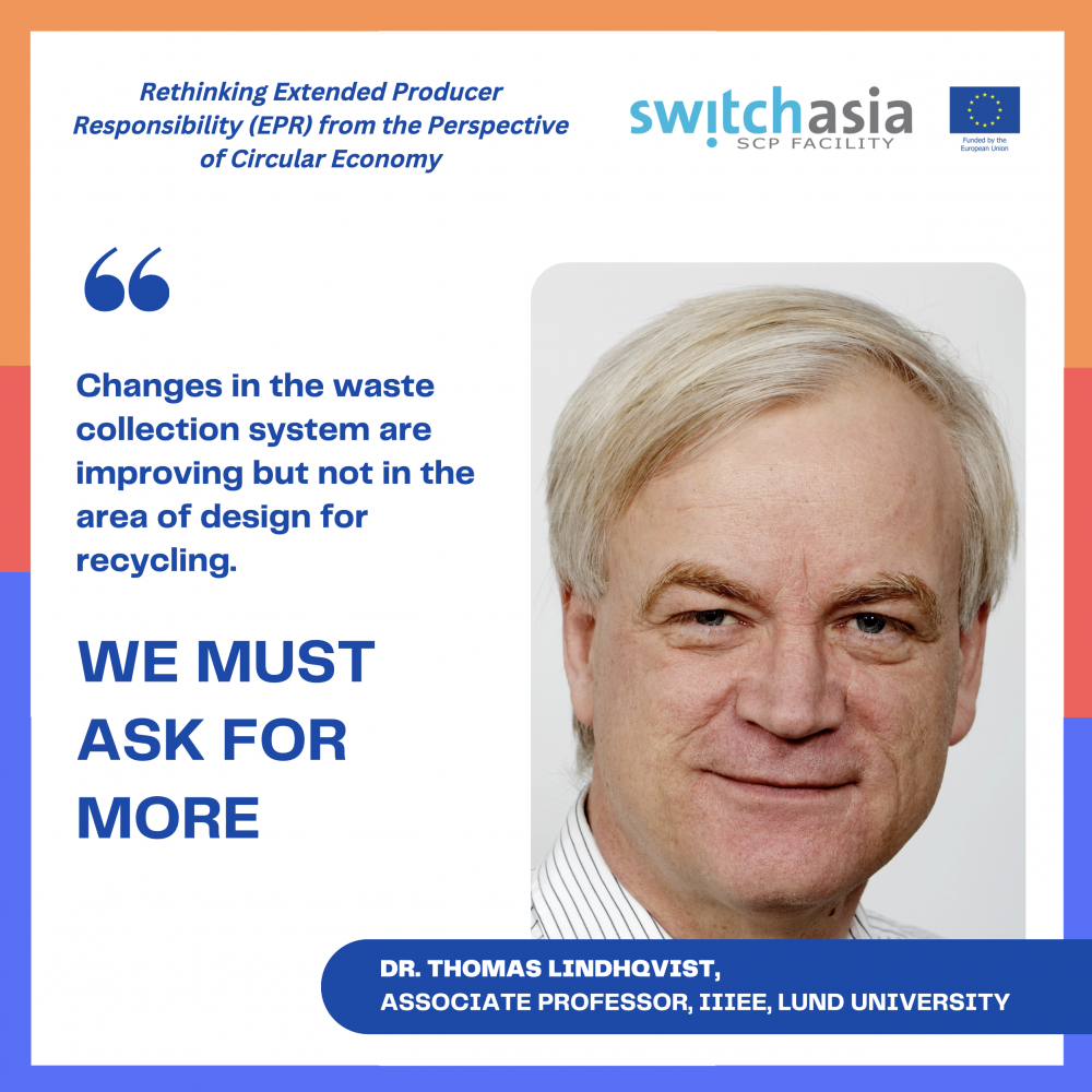 As such, SWITCH-Asia SCP Facility initiated the project: Rethinking Extended Producers Responsibility(EPR) from the Perspective of Circular Economy (2022) and a report will be prepared as an output of this project. The project has gathered experiences from India, Malaysia and Thailand, as well as, relevant learnings from Europe and countries globally.