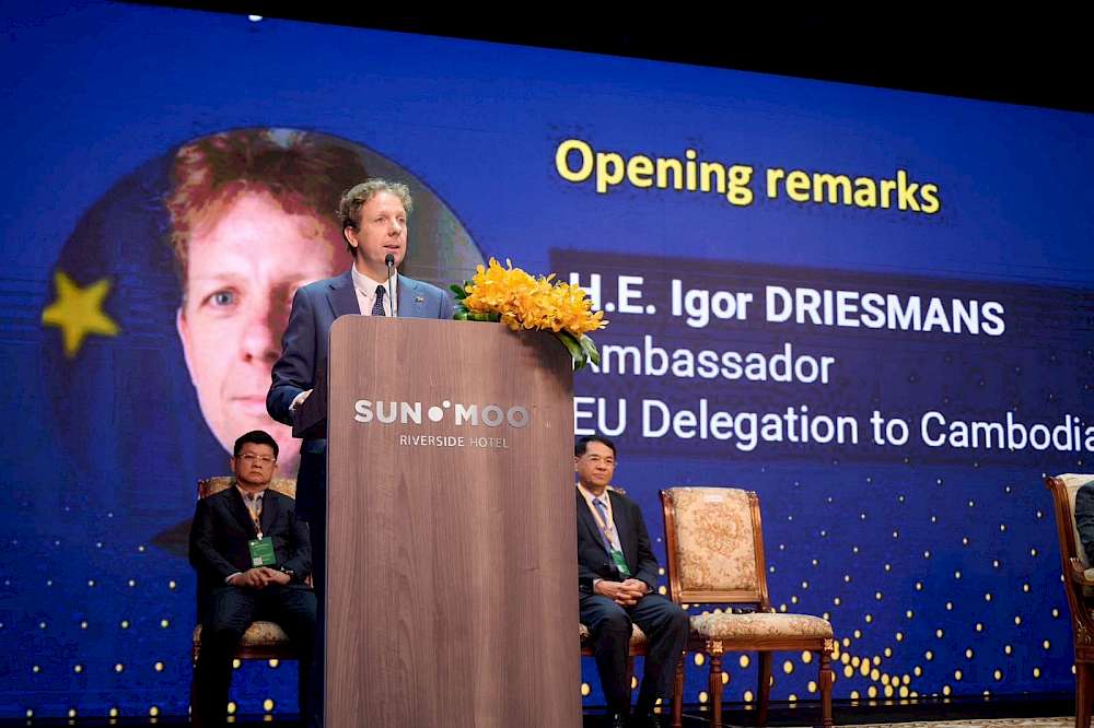 H.E. Igor Driesmans, Ambassador of the European Union to the Kingdom of Cambodia, emphasized that enhancing sustainability of goods and services is essential to protect the environment, save energy and fight the impacts of climate change. In light of Cambodia’s upcoming graduation from Least Developed Country (LDC) status, increased sustainability will play a key role for access to the EU market which has supported economic development in Cambodia for many years. He noted: