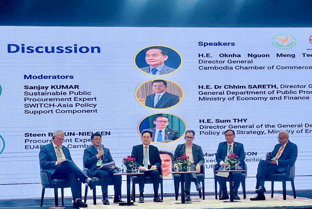 The event also featured a panel discussion highlighting EU and Cambodian experiences and practices in key areas such as sustainability policies, public financial systems, market transformation through SPP and transparency. The discussion focused on the motivations for adopting SPP, the keys for a successful implementation of SPP policies and the positive outcomes of SPP.