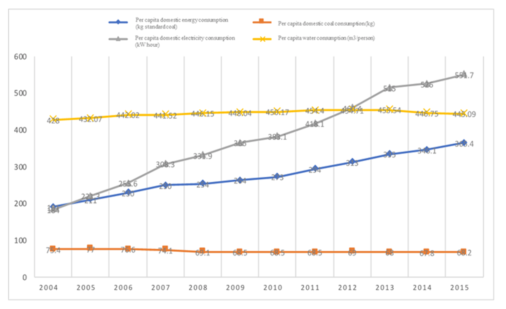 Per Capita Resource and Energy Consumption of Residents in China (2004-2015)