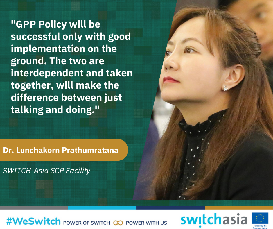 Assoc. Prof. Dr. Thumrongrut Mungcharoen, from the National Science and Technology Development Agency and the President of the APRSCP Foundation stated, “SWITCH-Asia has been a key supporter to make Green Public Procurement a reality in Thailand both in policy and practice. Results from our project show that all sectors can improve their procurement by enhancing their capacity, making data available, and creating an enabling environment for procurers.”
