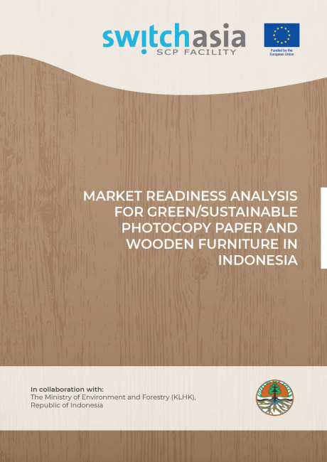 In view of the intention of the Government of Indonesia (GoI) to strengthen SCP policies through implementation of G/SPP focusing on two pilot industries, paper and wood furniture products, KLHK partnered with the SWITCH-Asia Programme and the GIZ Advance SCP, together with other government agencies, industry associations, and civil society groups. With the support of the SWITCH-Asia SCP Facility, a Market Readiness Analysis for Green/ Sustainable Photocopy Paper and Wooden Furniture in Indonesia was prepared. The purpose of this market readiness analysis is to study the current and future demand/ consumption by government and the current and future production/supply capacity of sustainable paper and wooden furniture products.