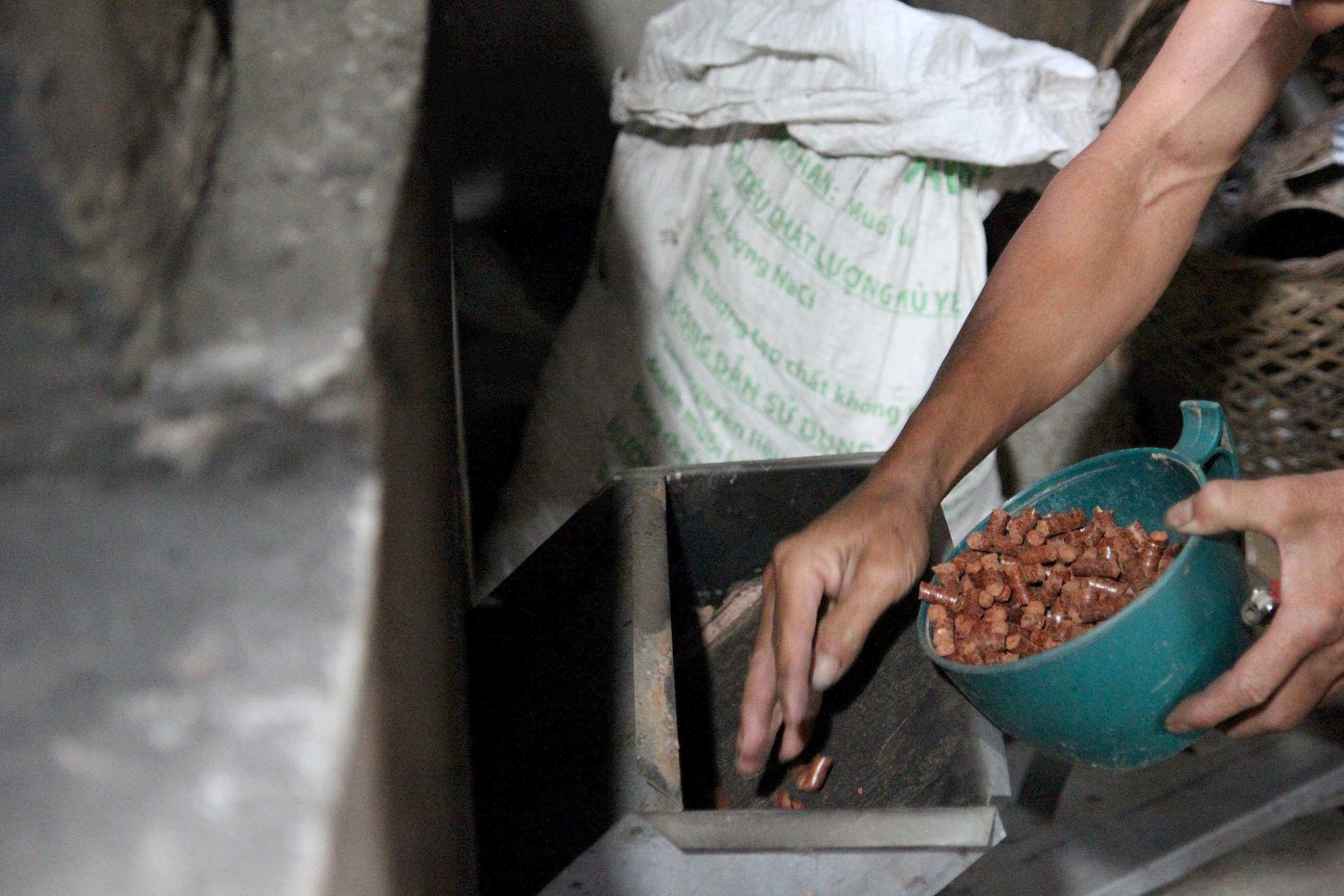 The project team has visited Mr. Dinh Quy's tea factory on a sweltering day in June. Surrounded by the scent of freshly-brewed tea, Quy wiped the sweat off his brow as he put compressed sawdust into the biomass gasification stove. "Our cooperative used to use firewood to process tea. The burning fire and the high temperature, together with a lot of smoke and dust, made it debilitating for workers."
