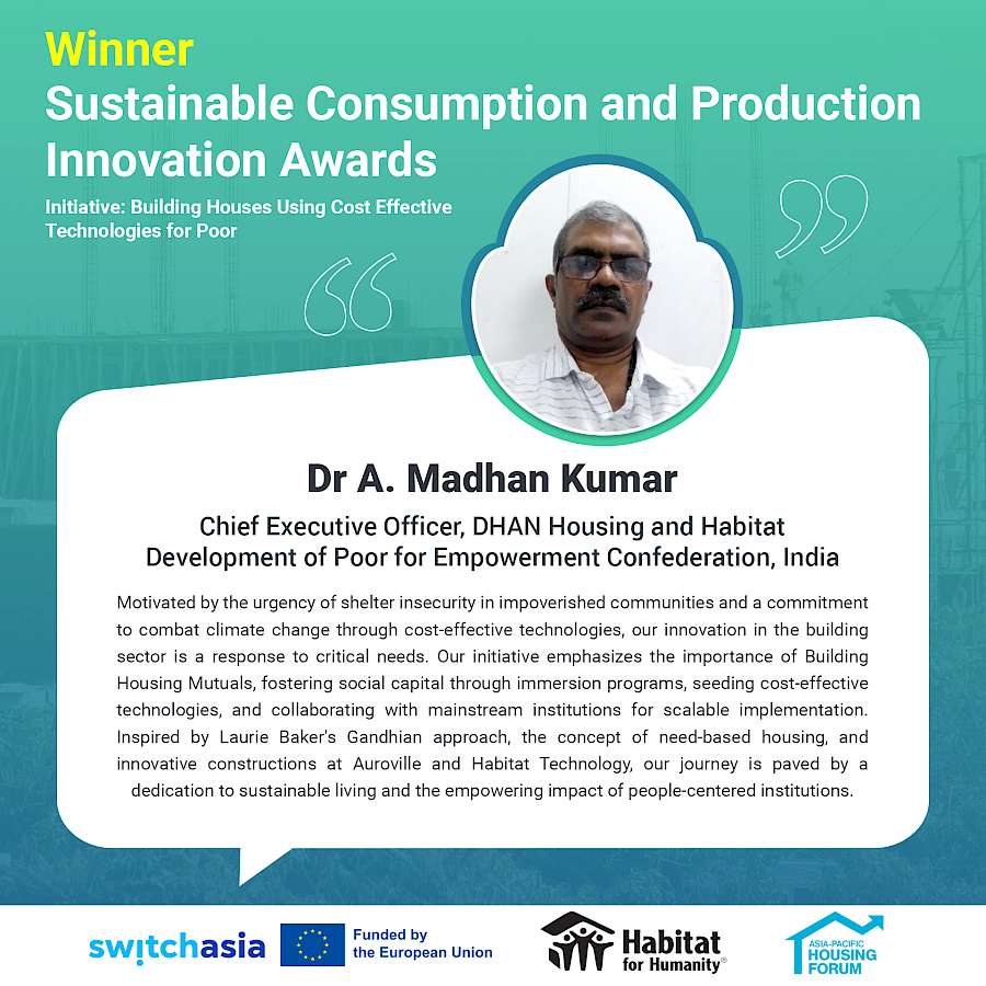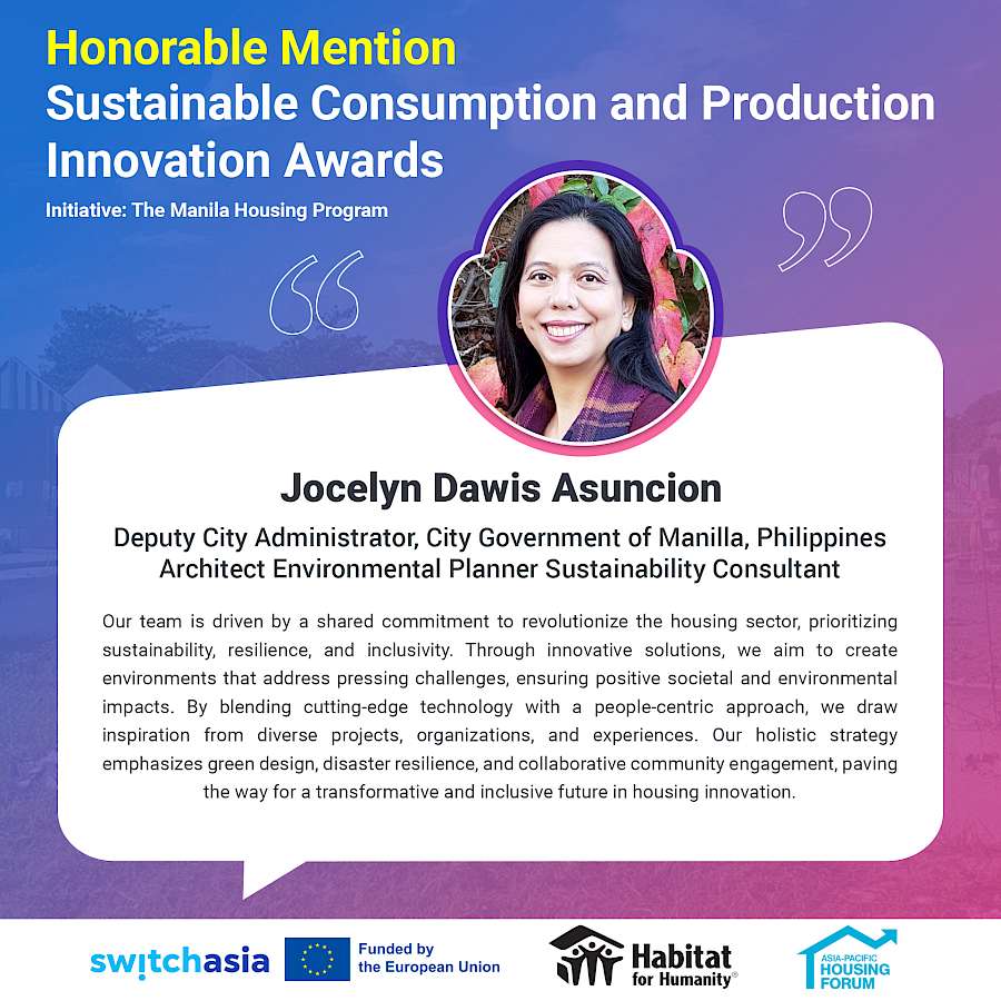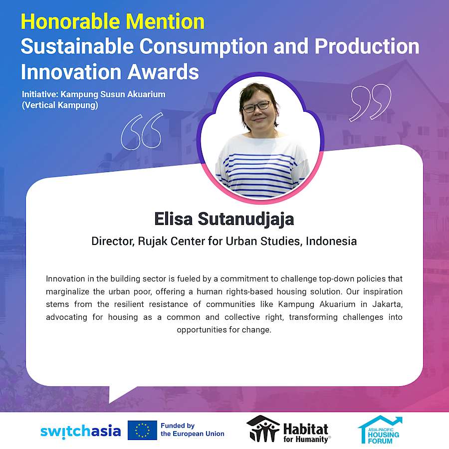 Within the context of the Asia-Pacific Housing Forum organised by Habitat for Humanity on 26-27 October 2023 in Suwon, Republic of Korea, a Special Award for Sustainable Consumption and Production (SCP), supported by EU SWITCH-Asia, recently recognized initiatives that incorporate sustainability in housing solutions.