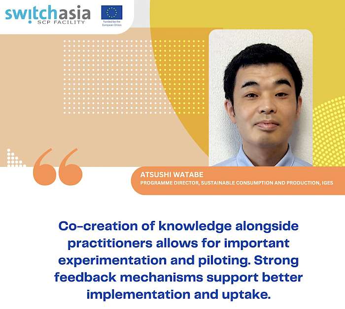 This article was written by Alice Yamabe and Dwayne Appleby, Institute for Global Environmental Strategies (IGES) in coordination with Zinaida Fadeeva, SWITCH-Asia SCP Facility. It was produced within the context of the organisation of the webinar entitled Innovation and SCP: The Role of Knowledge Institutions that took place on 28 October 2022 and which brought together Asian and global sustainability experts from academia, international research institutes, and the business sector to identify the best role that KIs can play to support the building of innovation ecosystems.