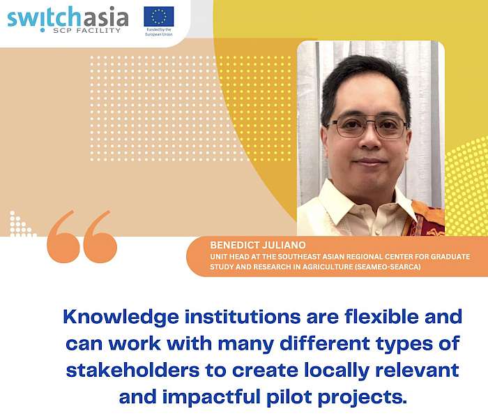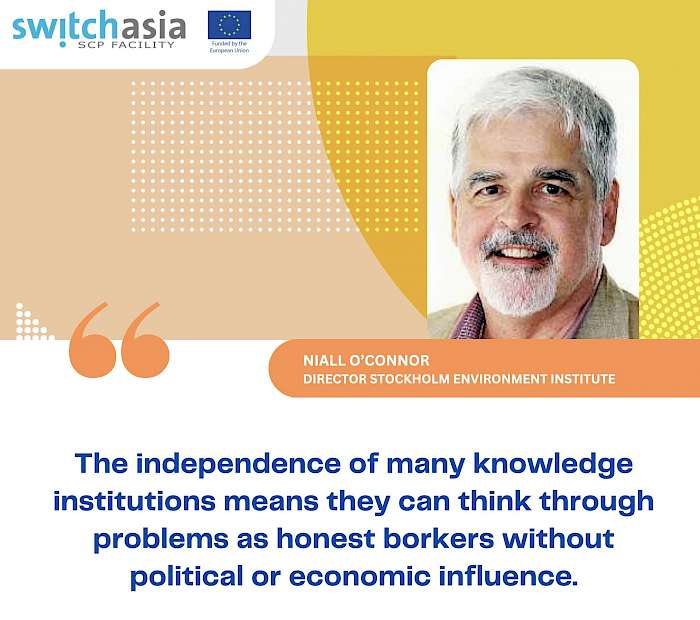 This paper is a reflection of the discussions transpired at the webinar entitled Innovation and SCP: The Role of Knowledge Institutions was organised by the SWITCH-Asia SCP facility on 28 October 2022. The document was also informed by knowledge of the authors and by research undertaken in a course of preparation for the webinar. The event convened sustainability experts from academia, international research institutes, and the business sector. Panellists had a fruitful discussion to identify the best role that KIs can play to support the building of innovation ecosystems. The discussion centred around three key thematic areas: