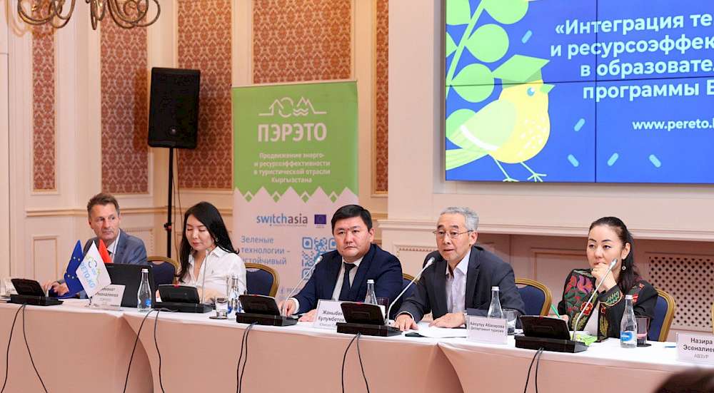 At the end of May 2024, Bishkek hosted the conference "Integration of Energy and Resource Efficiency Topics into University Educational Programs," organized by the EU funded SWITCH-Asia PERETO project – Promoting Energy and Resource Efficiency in the Tourism Industry of Kyrgyzstan. The event gathered representatives from the Ministry of Education and Science, the Department of Tourism, the Kyrgyz Academy of Education, university leaders and lecturers from Kyrgyzstan, professional lyceums, the Alliance of Universities of Kyrgyzstan for Green Economy and Sustainable Development, HORECA Association Kyrgyzstan, and the Green Alliance of Kyrgyzstan.