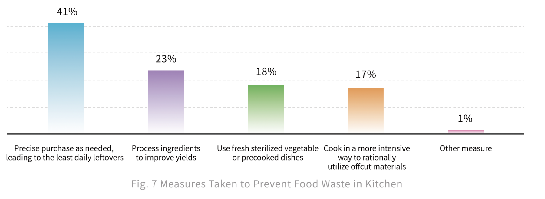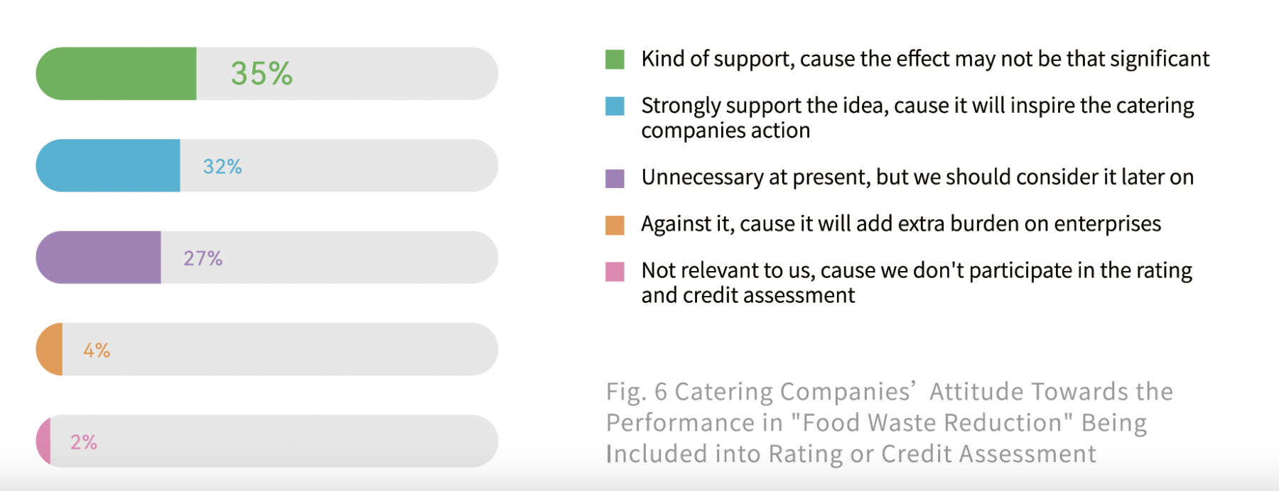 For example, 67% of the participating enterprises support incorporating "food waste performance" into the rating or credit assessment process, although a small proportion remains cautious. 56% of catering enterprises believe there is a need to strengthen training on "food saving and food waste reduction", with 34% indicating an urgent need for technical training. Moreover, various waste reduction measures need further promotion to ensure concepts like "precise purchase" are effectively applied.