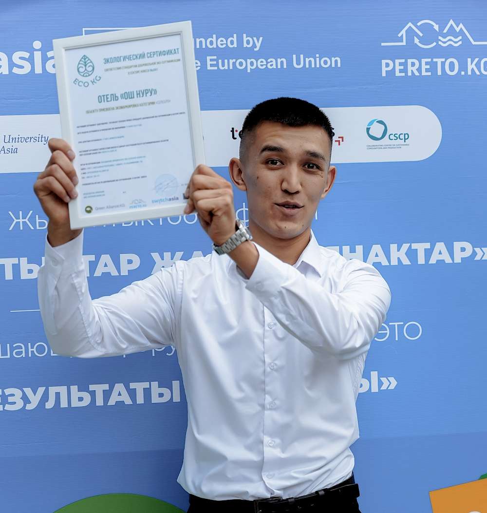 In total, PERETO energy and resource efficiency certified consultants conducted eco-audits in 88 hotels, cafes, and restaurants across Kyrgyzstan. Enterprises that successfully passed the audit were awarded eco-certificates and quality marks in the categories of “Bronze” (49 tourism enterprises), “Silver” (37 enterprises), “Gold” (18 enterprises), and “Platinum” (2 enterprises). Certificates of compliance with the environmental standard were included in the unified registry of certified objects of the Green Alliance of Kyrgyzstan.