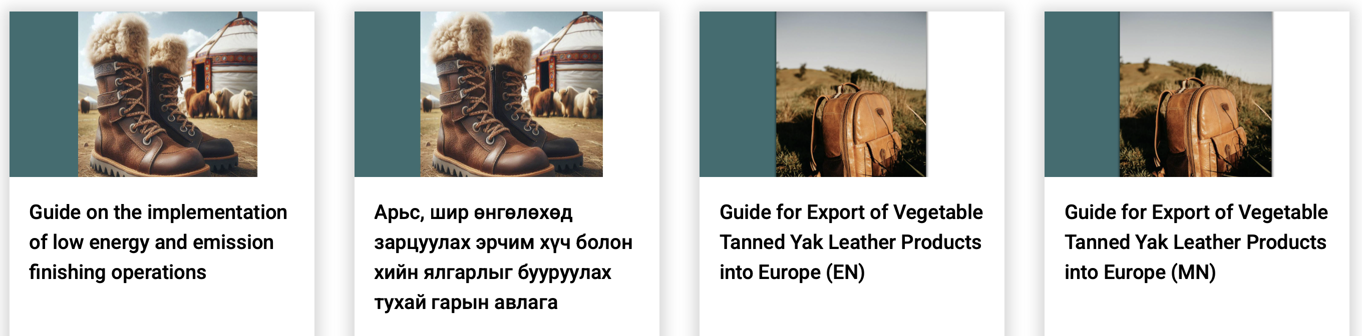 Complementing these efforts, the project also produced a comprehensive “Guide for Export of Vegetable Tanned Yak Leather Products into Europe” (see Mongolian version here), offering detailed insights into regulatory requirements across various markets. The guide outlines export procedures for semi-processed and finished leather, highlights relevant Mongolian and international legislation, and provides practical guidance on certificates of origin and permissible residues.