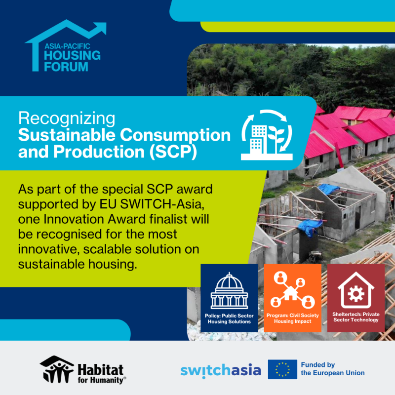 The creation of a joint Sustainable Consumption and Production (SCP) award for housing projects by Habitat for Humanity supported by SWITCH-Asia underscores the critical role the housing sector plays for a more sustainable economy and society.