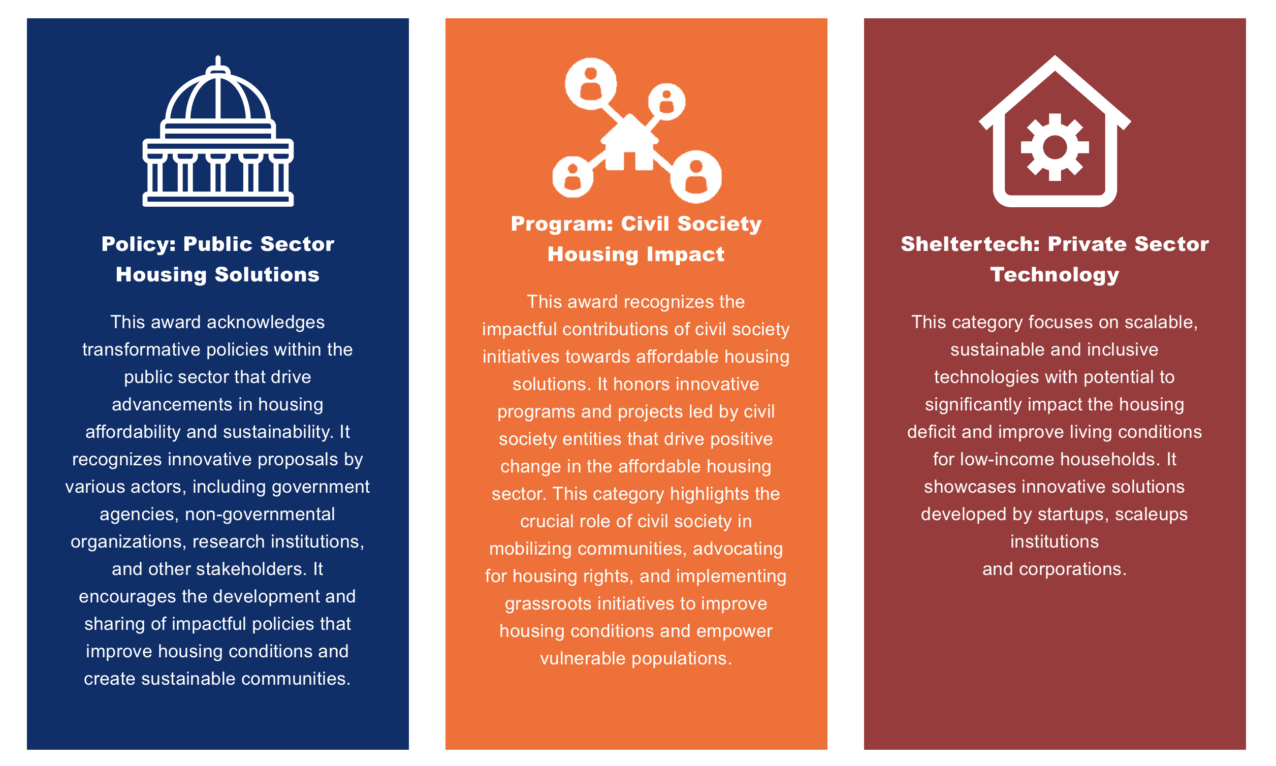 One of the most awaited components of the Asia-Pacific Housing Forum, the Innovation Awards aims to inspire and empower individuals, organisations, and institutions to push the boundaries of creativity and problem-solving in addressing the housing challenges faced by communities in the region. With a focus on innovation, the awards recognise outstanding initiatives, programmes and solutions that are making a difference in the way communities improve the places they call home.