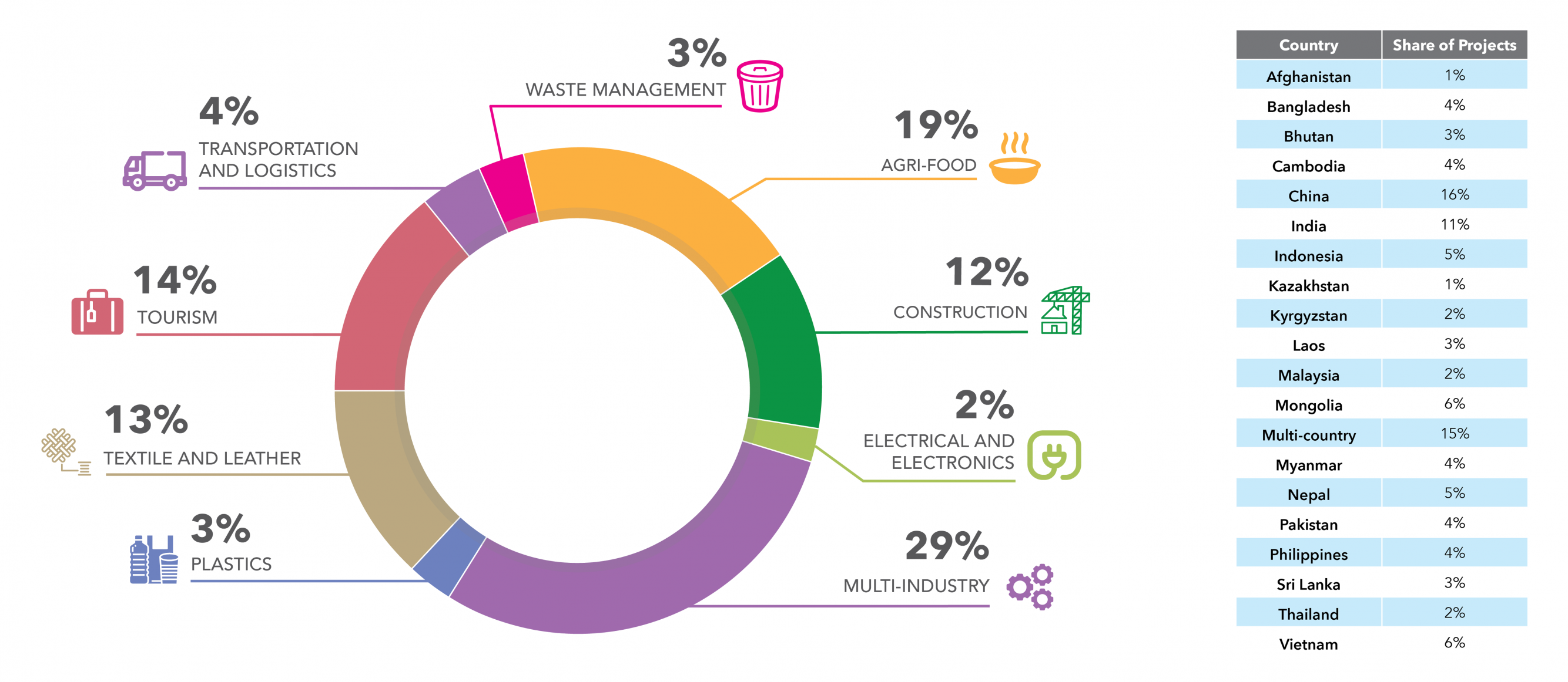 Through its grants scheme, SWITCH-Asia funds pilot projects helping companies to adopt cleaner technologies and more sustainable industrial practices, as well as helping consumers to act more responsibly in their daily choices and lifestyles. Since 2007, this programme has funded circa 130 projects, of which 23 new ones active as of 2020. Projects span across a wide range of sectors and are implemented by over 400 Asian and European partners, about 100 private sector associates, indirectly benefitting up to 70.000 micro, small and medium-sized enterprises (MSMEs). A wide network of development practitioners, SCP researchers, cleaner production experts, industry associations, SMEs, financial institutions, and policy makers working in national ministries, has also been established both in Asia and in Europe.