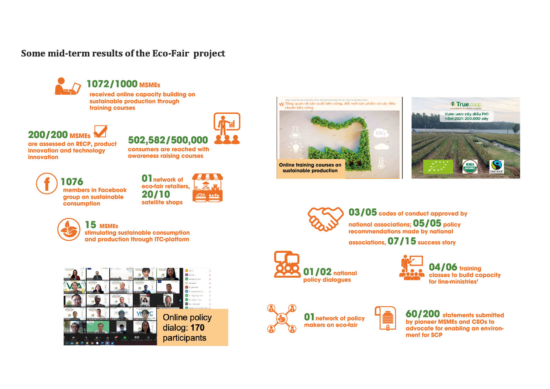 Finally, Dr. Nguyen Bao Thoa expressed his gratitude to the European Union for funding the Eco-Fair project, one that is addressing sustainable supply chain management focusing on green trade and facilitating the integration of MSMEs into international supply chains. She also remarked the importance of this project in supporting policy development on eco-fair production and consumption in Vietnam and the region, while raising consumers’ awareness on eco-fair labels and SCP.