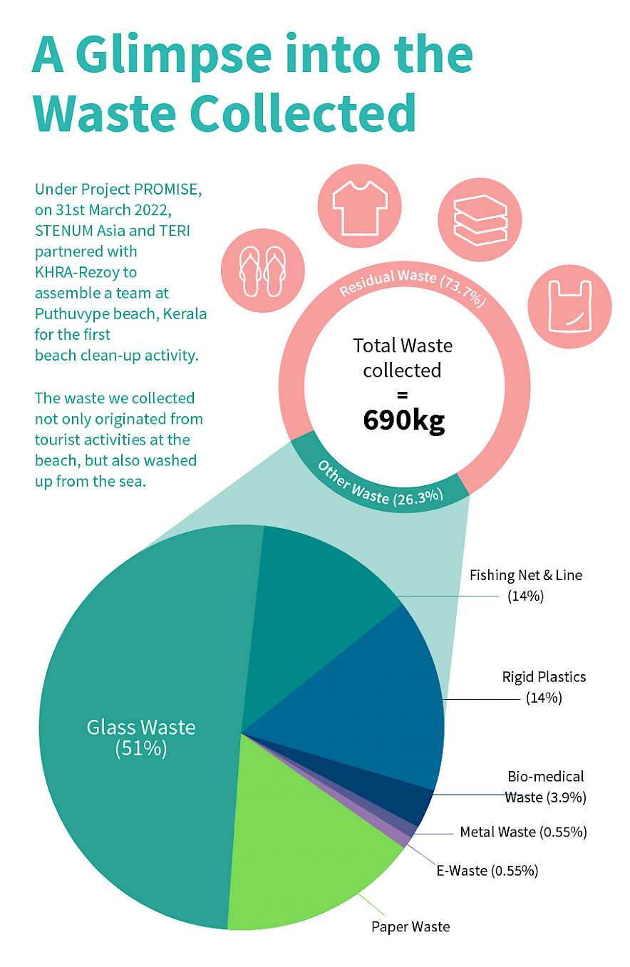 The beach clean-up efforts were coordinated by PROMISE implementing partners, STENUM Asia and The Energy and Resource Institute (TERI), with the local support of KHRA-Rezoy at Puthuvype beach, Kerala.