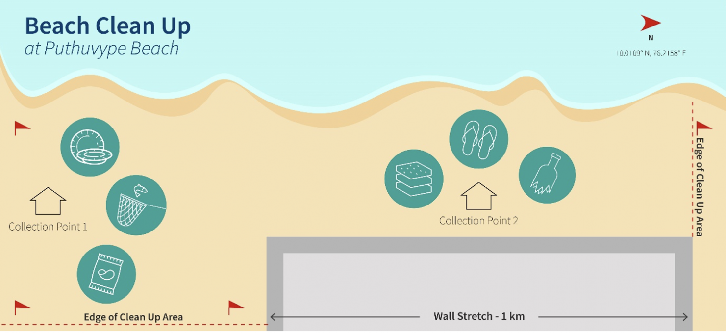 Mr. K Chandra N Pillai, the Chairman of Greater Cochin Development Authority (GCDA) delivered a welcome speech emphasising the importance of this project’s actions in tackling the urgent issue of marine litter on beaches. He ensured further support will be provided by GCDA to jointly tackle these issues and encouraged volunteers to take the opportunity of joining the beach clean-up as one setting the example towards sustainable living for many others. Volunteers were then briefed by the STENUM Asia team on the safety and waste-picking protocol to be followed in the designated beach clean-up area.