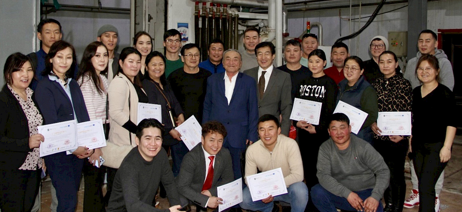 From 9th January - 13th January 2023 a training programme on all aspects of quality of raw material (including absence of residues, acceptable preservation methods and the salvaging of residual fat and flesh (for by-products processing) was delivered, based on the EU partners expertise and international best practices. A cadre of 31 staff of tanneries members of the Mongolian Vegetable Tanned Yak Leather Cluster joined the 5-days training. Individuals were selected on the basis of their responsibilities for inputs to raw materials procurement and processing/production; and included buyers (and/or agents), beamhouse supervisors, and quality assurance technicians. Topics included: