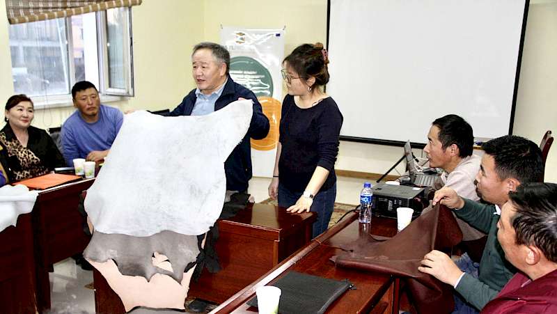 The training for traders and merchants engaged in the production and supply of yak hides, focused on hides’ preservation and storage, with emphasis on features of fresh and preserved hides, environmental issues related to hides for leather, traceability of hides and identification and registration (I&R), sorting, grading, storage and transportation of hides.