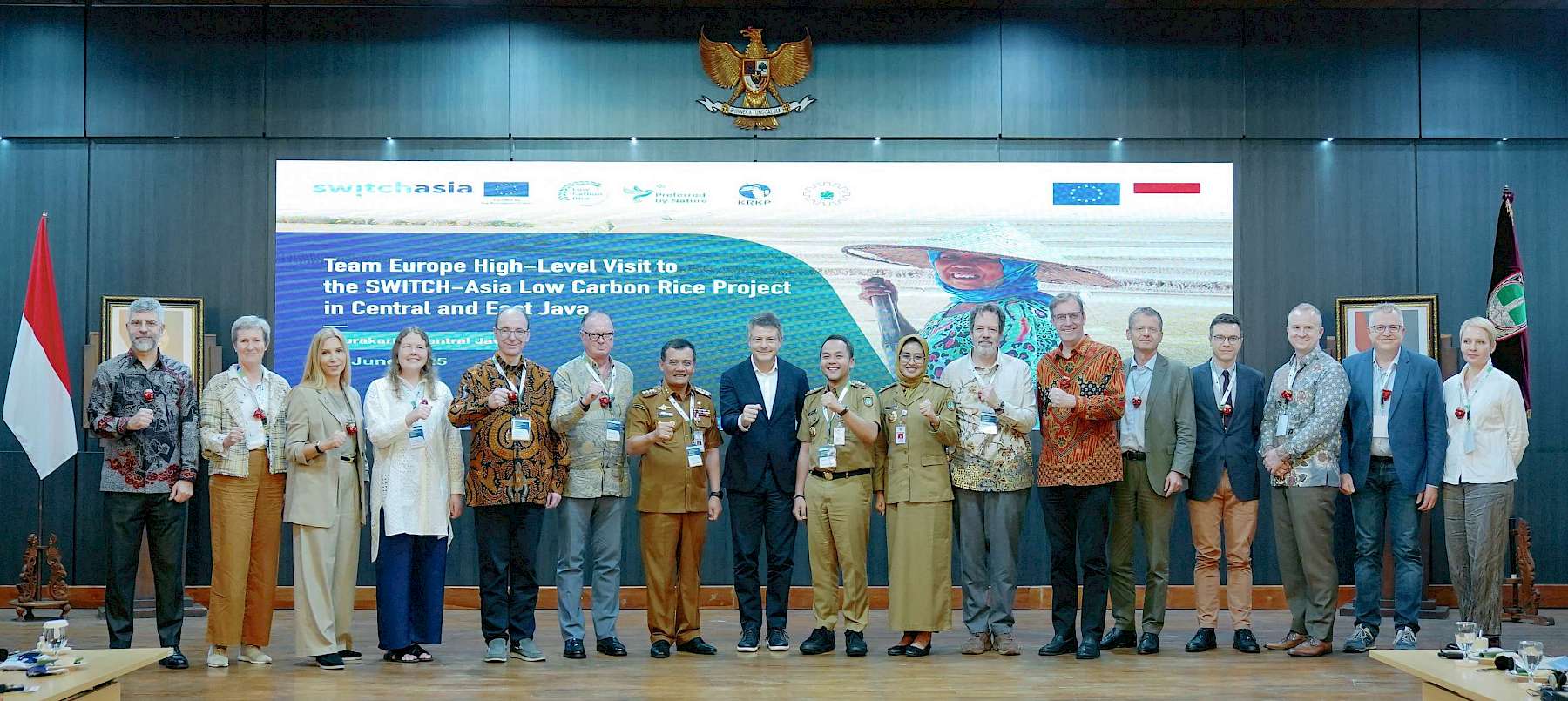 Team Europe – comprising the Delegation of the European Union (EU) and 12 EU Member States – recently concluded a visit to Central and East Java to strengthen cooperation on sustainable agriculture under the EU-funded SWITCH-Asia Low Carbon Rice Project. The visiting Team Europe included ambassadors and representatives from the EU, Belgium, Bulgaria, Denmark, Germany, Spain, Cyprus, Lithuania, Netherlands, Austria, Poland, Finland and Sweden.