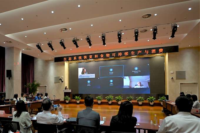The dialogue, as a complimentary to the Celebration of the 2021 World Environment Day, brought together 16 notable speakers from academia, national government and international organizations to share knowledge connecting sustainable food production and consumption to ecosystem restoration, and showcased good practices on sustainable food consumption and production from private sectors, civil society, practitioners and youth in the two panels. Empowerment of women in food systems was also highlighted during the panel session. The event was attended by 50 participants in person and reached more than 188,000 viewers via three real-time livestreaming platforms.